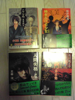 人間失格、羅生門やら芋粥やら、時をかける少女やら(リンク先はAmazon)。 買う基準?文学作品と呼ばれるとか、有名な人が書いたとか―ンなもん興味ない。たぶん。 (※8月30日追加) キッド:―ふっつーに有名な本だし。表紙変わってたりしても。 ミリア:しかも『時をかける少女』って、アニメになる前の原作小説、ですし……。 背後:『こころ』に至っては、高校時代に間違えて全制覇したし。 キッド:確か、「夏休みの宿題で、こころの『下』だけ読む」を「こころを読む」って誤認して、上と中を間違えて読んだという― ミリア:よ、読んだなら何で買うんですかっ 背後:理由の1つは、ラノベに偏ってたから、かな?―バランス取るため? PR