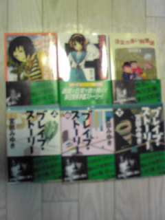 キッド:背後、本当に懲りてないなぁ(空きのない本棚?を見ながら) ミリア:しかも、買ったのは金曜ですし……。 背後:―さすがに、収納しきれないから売ってきたけど。『こころ』を読んでない状態で増やしても、自殺行為とは思ったけど。 キッド:まぁ、背後は生きて死んでるようなもんだし。 背後:な、なんか矛盾聞こえたような気が(汗) とりあえず、読んだ3冊では―芥川作品がよくわからん(苦笑) ミリア:背後さん、買った本ですけど…… 背後:上に示したとおr(ゴッ) キッド:(痛さを紛らせようと、手を振りながら)背後、これいつぞやの、オフのけいh―あれ?秋葉原の看板? 背後:ま、まだあるとは思わなかった……(頭押えながら) 背後:改めて。これが買った―あれ、6冊?(汗) キッド:―数えてなかったんだ(汗) 背後:とりあえず、金曜の帰りに買って、土曜夜までには『NHKへようこそ』(左上)と『涼宮ハルヒの憂鬱』(上中央)は読んだ。 PR